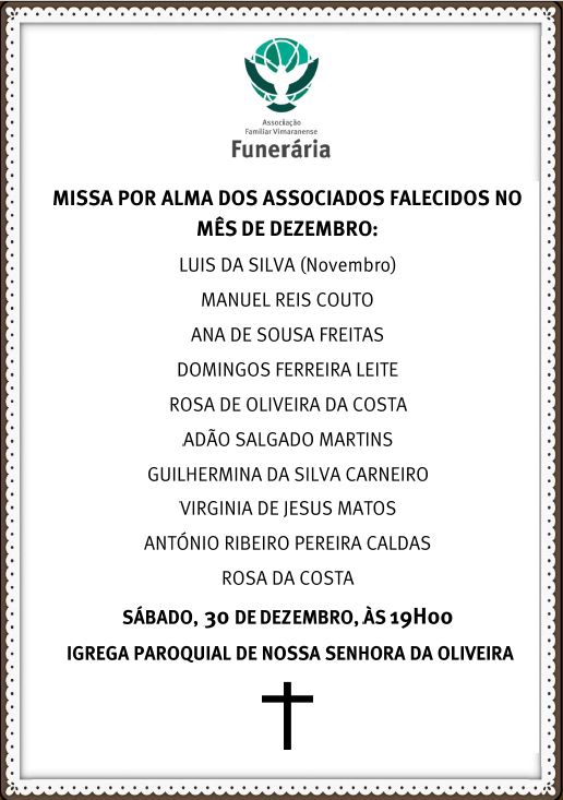 MISSA POR ALMA DOS ASSOCIADOS FALECIDOS NO MÊS DE DEZEMBRO: