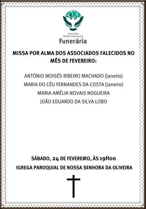 Missa por Alma dos Associados Falecidos no mês de Fevereiro/18