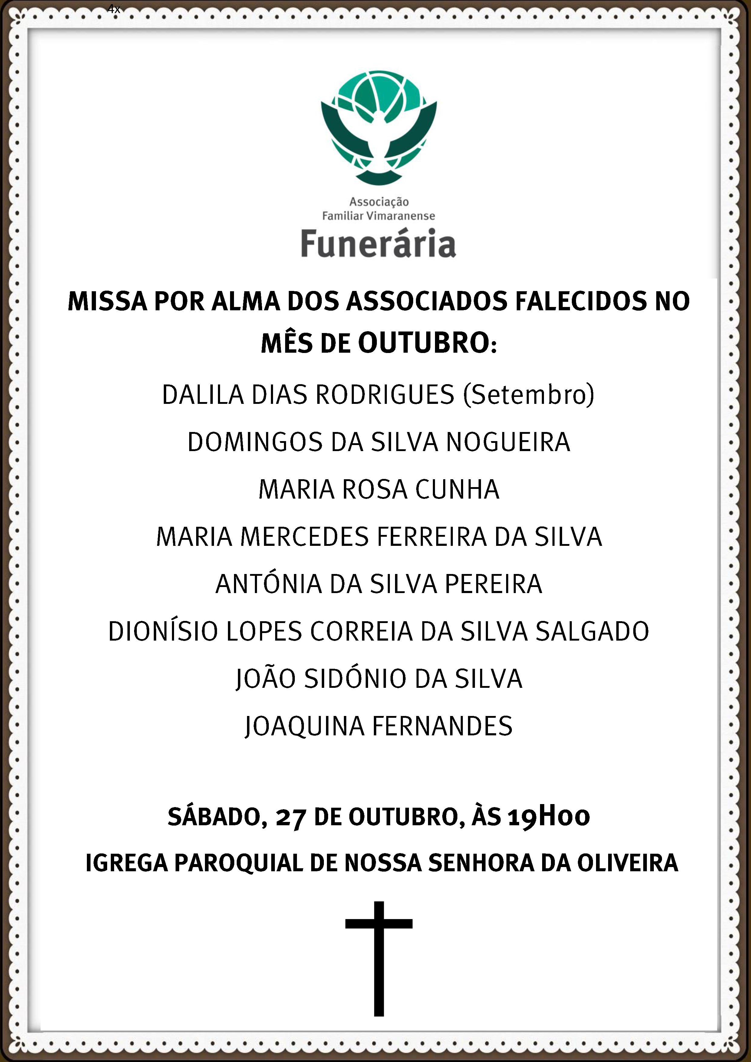 Missa por Alma dos Associados Falecidos no mês de Outubro/18