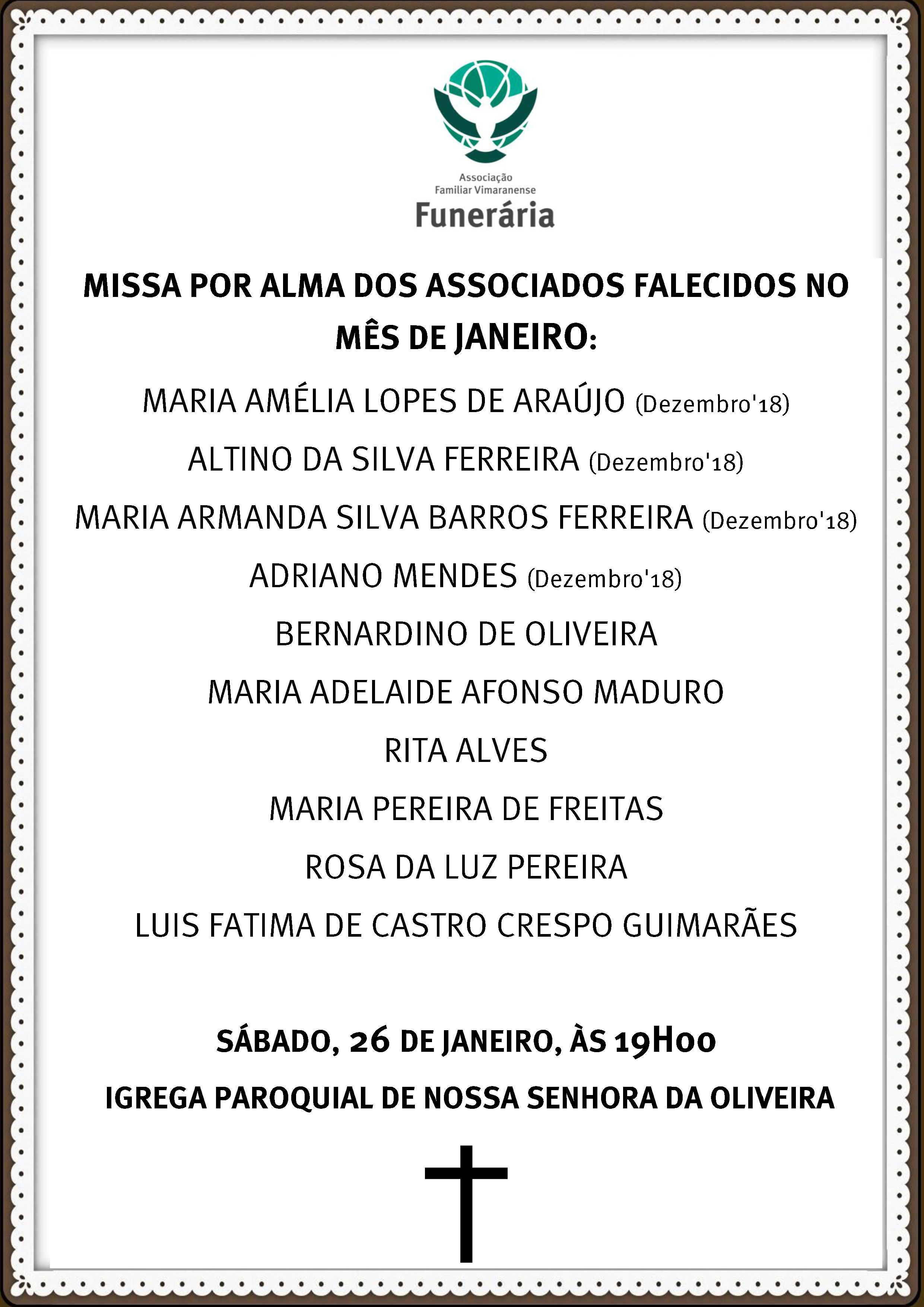 MISSA POR ALMA DOS ASSOCIADOS FALECIDOS NO MÊS DE JANEIRO: