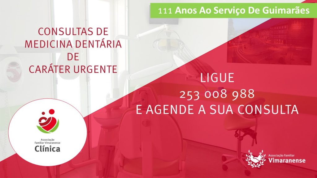 Tendo em conta a epidemia atual de Covid-19 e o papel importante que desempenhamos na assistência aos nossos associados, informamos que a partir do dia 16, quinta-feira, a Associação Familiar Vimaranense – Clínica irá disponibilizar aos seus associados consultas de medicina dentária de caráter urgente.